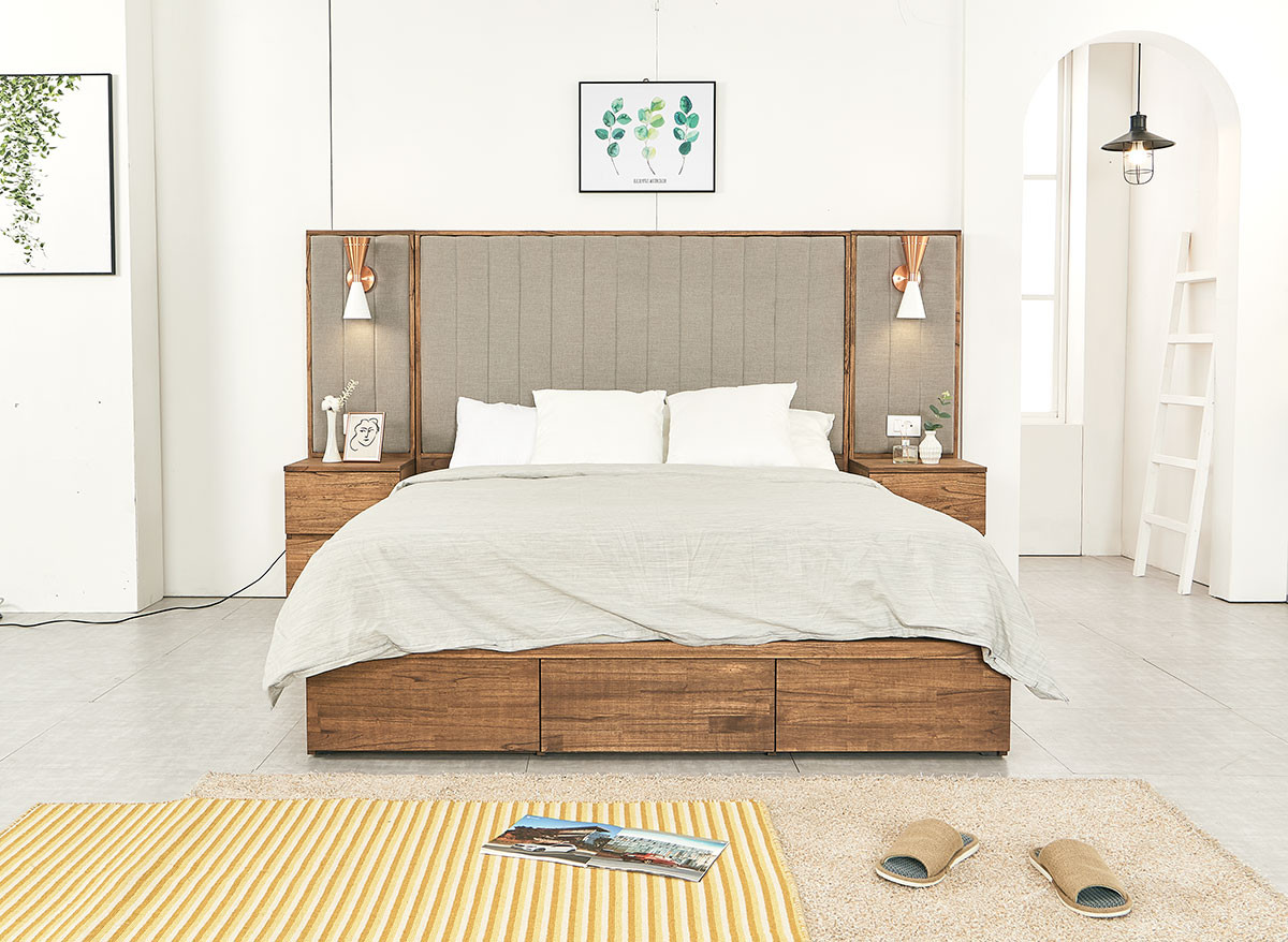 디올 파스텔원단 헤드 참죽원목 호텔식 침대 수납형 SS,Q